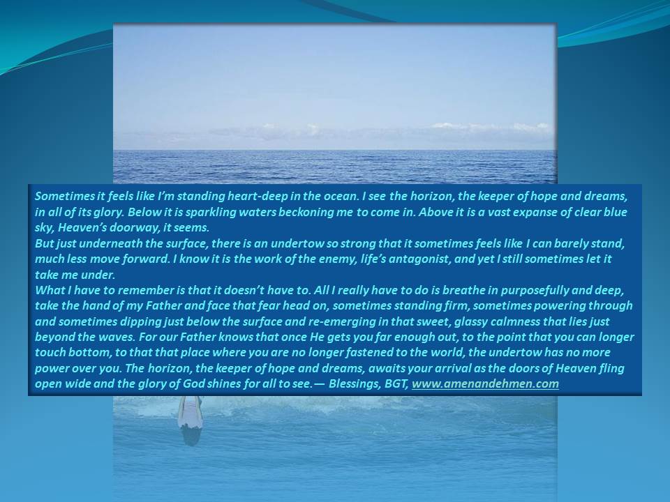 The other day, a friend was telling me that he gets his inspiration while riding his motorcycle to which I quickly quipped that I got mine on my riding lawnmower. And while I said it jokingly, it’s really very true. Indeed, sometimes God speaks to us in the strangest places—and, for me, it is quite often over the roaring of a lawnmower engine. Perhaps He finds that it is easier for him to “cut” to the chase as the rapid revolutions of the engine and blades drown out all the other noise of my world and I become more focused on Him and His creation. It really is a special time during which, over the years, I have received a lot of great insight.